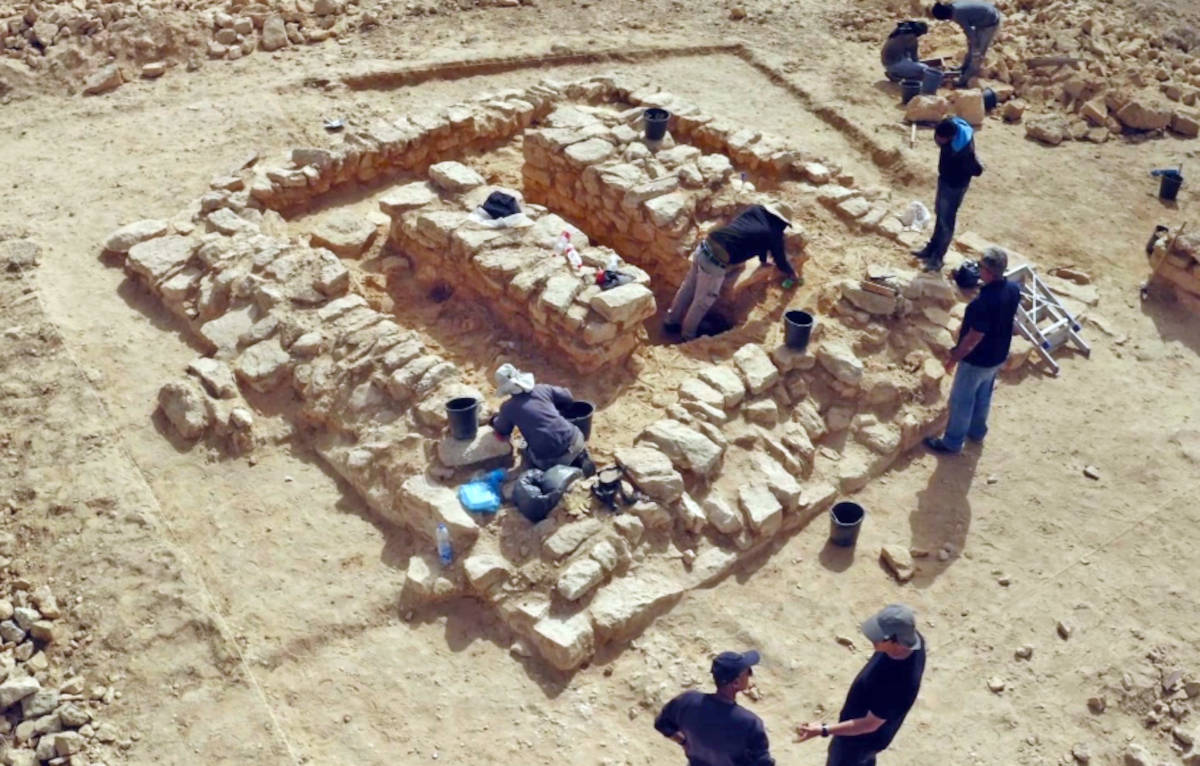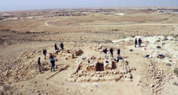 Top image: Aerial view of the excavation site in the Negev Highlands of Israel.