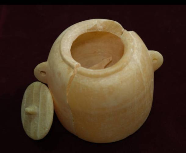 Alabaster vessel excavated from the Negev cemetery, after being cleaned up and preserved in an IAA lab. (Israel Antiquities Authority)