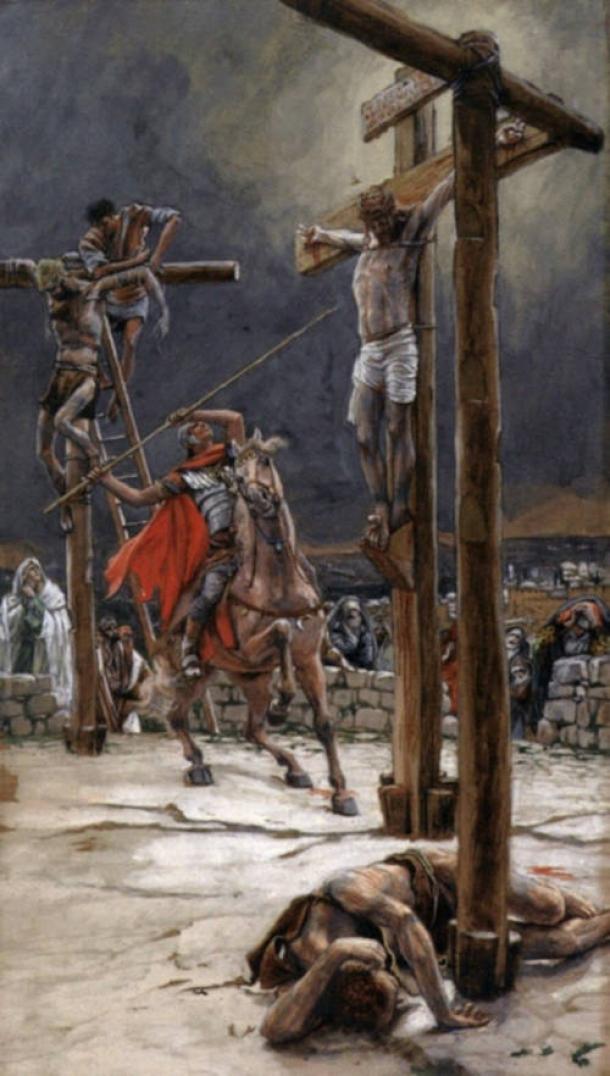 Longinus piercing the side of Jesus Christ with the Spear of Destiny by Jacques Joseph Tissot. (Public Domain)