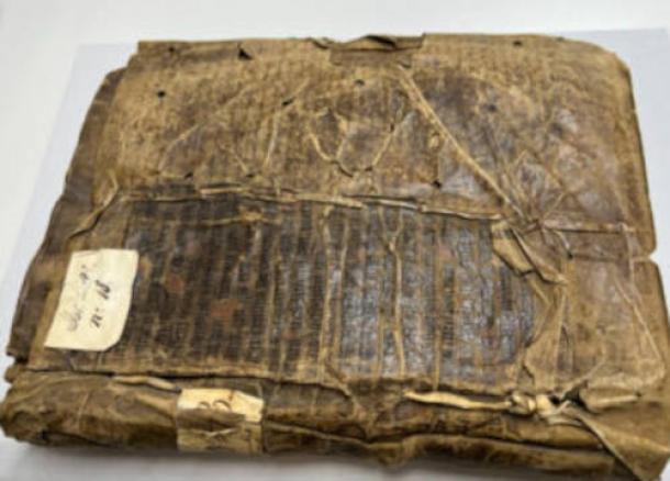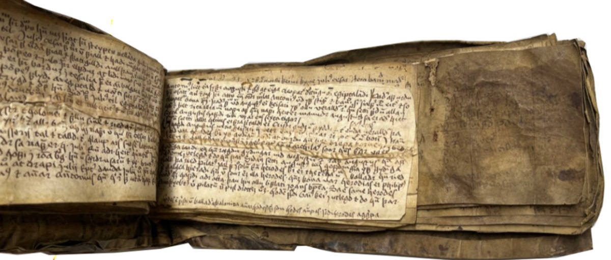 Medieval bishop’s mitre that was made in Iceland with recycled parchment with old Latin script still legible. (Tom Lorenz/Norwegian University of Science and Technology).