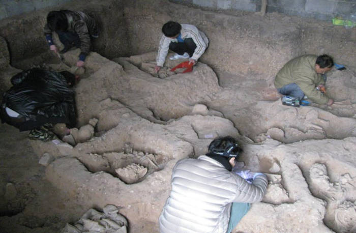 A middle-aged woman, discovered in a tightly flexed position at the Liyupo site in southern China, preserved through smoked mummification. (Hsiao-chun Hung)