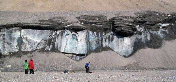 Exposed ice sheet in the Garwood Valley of Antarctica, the type of thick sheet that would have covered huge sections of the planet following the onset of an ice age. (James O’Connor, USGS/Public Domain).