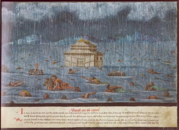 Illustration from a book written in 1552 by Hans Burgkmair der Jüngere depicting the great flood written about in Genesis, which from Randall Carlson’s perspective would represent a mythologized version of a flood that wiped out civilization after the end of the last ice age. (Public Domain).