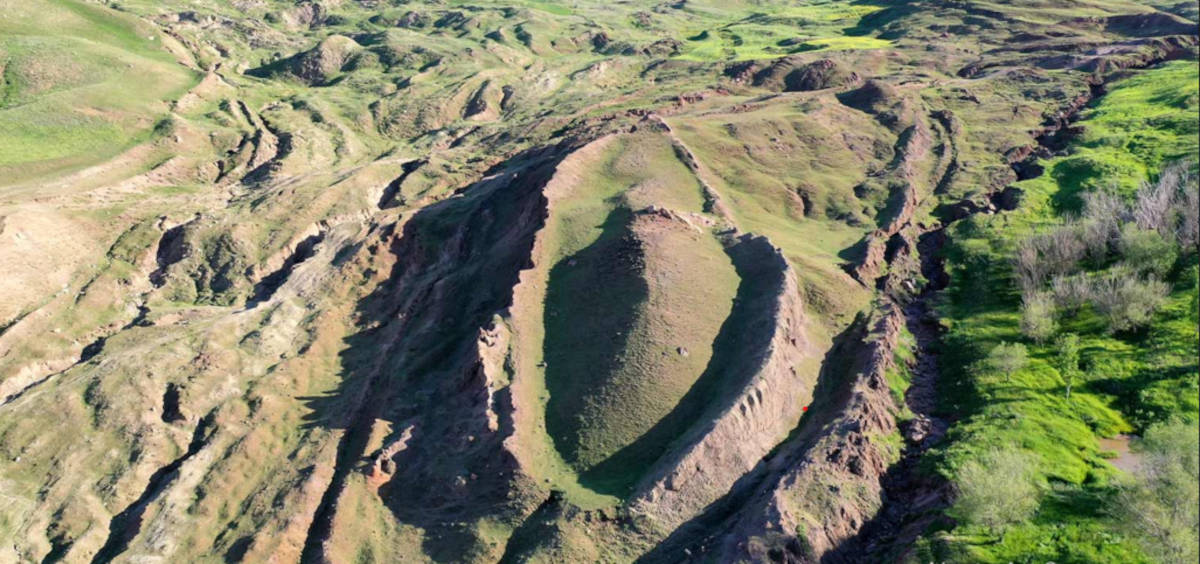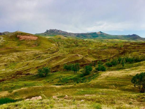 The Durupinar site as seen from the Na’hum Gemisi visitor center bluff in the Agri region of eastern Turkey. (Wikkiwooki/CC BY-SA 4.0).