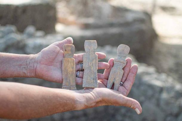 Apart from the 1,000-year-old egg, the team found three Islamic-period Coptic bone dolls in the Yavne cesspit. (Yoli Schwartz / Israel Antiquities Authority)