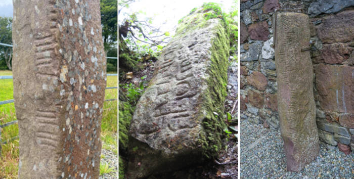 Top image: Ogham inscriptions on ancient stones from Ireland and Cornwall. Source: Handout/ The Guardian