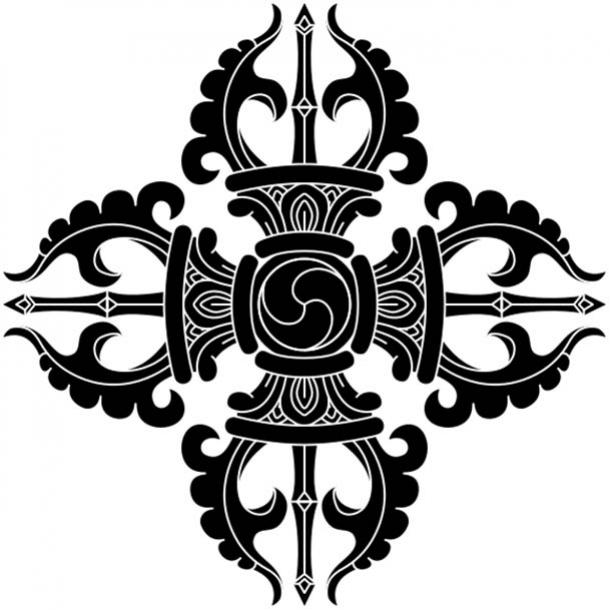 The basic form of a crossed Buddhist vajra has the same equal-sided proportions as a Thomonian cross. (CC BY-SA 4.0)