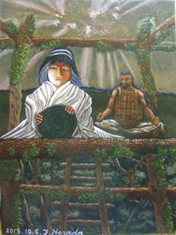 Young Himiko receiving her oracle mirror. (CC BY SA 4.0)