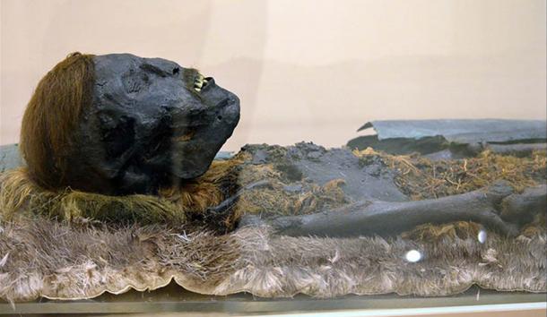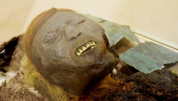 Similarly, a red-haired man was found, protected from chest to foot by copper plating. In his resting place, was an iron hatchet, furs, and a head buckle made of bronze depicting a bear.