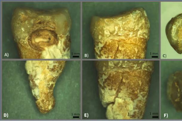 Optical microscope images of the archaeological upper premolar tooth, which helped in the identification of the Byzantine-era female monk. (Kotli, et.al/Journal of Archaelogical Science: Reports).
