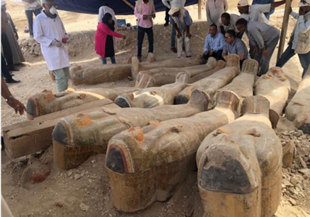 Top image: Some of the twenty coffins found in the Assasif necropolis. Source: Ministry of Antiquities