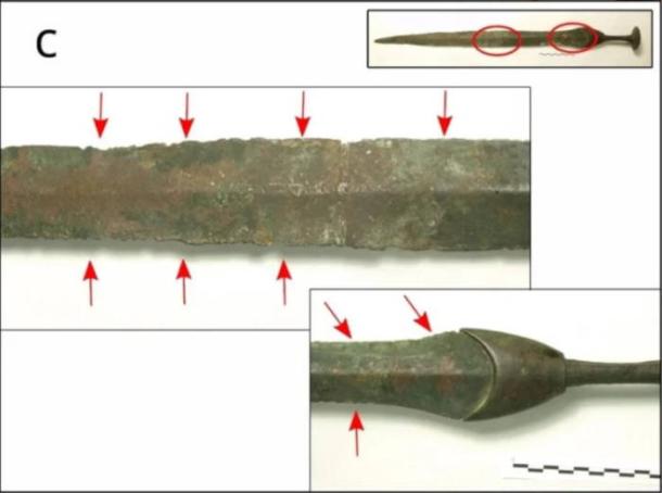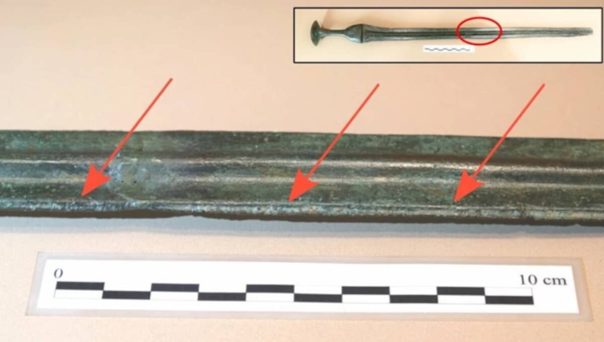 Top image: Image of the sword from Lloseta and detail of the burrs on the edge of the blade. Source: Archaeology Museum of Catalonia/Archaeol Anthropol Sci