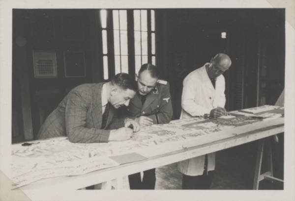 Herbert Jeschke, left, was sent to Bayeux to make sketches of the tapestry in 1941. (Bayeux Museum/The Conversation)