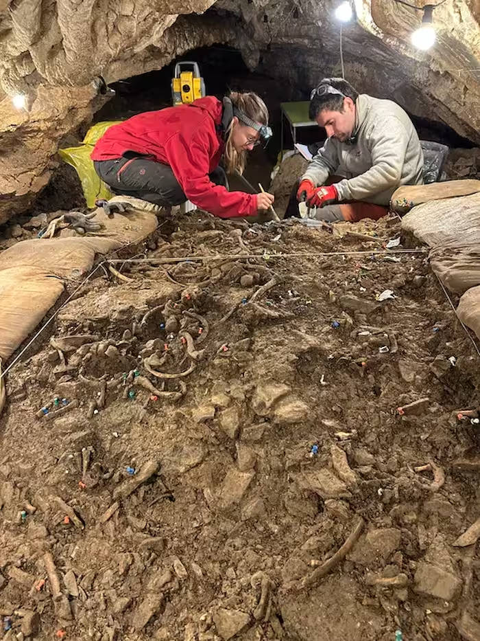 The cave site has been under systematic excavation since 2019, revealing over 6,000 human bone fragments from approximately 60 individuals who were buried there over a period of two or three centuries during the third millennium BC. The community appears to have used this high-altitude location as a collective burial ground, with the robust skeletal remains showing clear signs of the physically demanding lifestyle required for survival in the challenging Pyrenean environment.