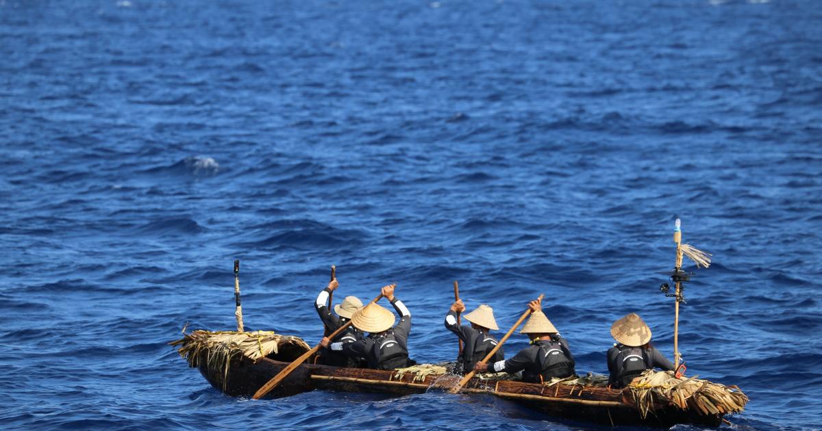 Top image: Crossing the Kuroshio: the team set out in their handmade canoe, making the entire experience as authentic as possible. Source: Kaifu et al, 2025/CC-By-ND