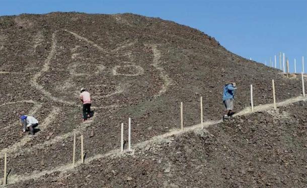 During the conservation project, workers found lines that were “definitely not natural,” according to Mr. Isla. Sky News reports that the archaeologists found the huge design of a cat, ‘with the head drawn high up on the hill and looking straight ahead, the body and tail extended further down.’ The cat geoglyph is impressive, it measures 37 meters (121 ft), and the lines of the design are about 10 inches (25.4 cm) wide.
