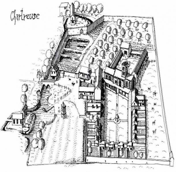 Sketch showing the medieval layout of Charterhouse. (Charterhouse Coventry)
