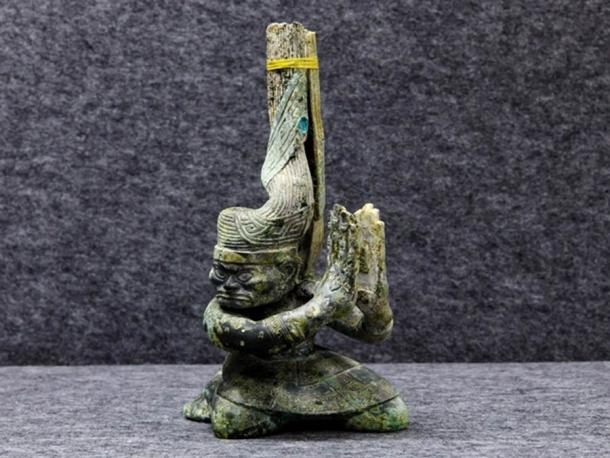 As if this priceless Chinese treasure hoard wasn’t enough for one year, in Pit 3, a “1.15 meters [3.8 feet] high, 3,000-year-old bronze figure was discovered with a zun, (ancient wine vessel) on top of the head.” According to Global Times, this single artifact is being described as an “unprecedented cultural relic,” on a global scale.
