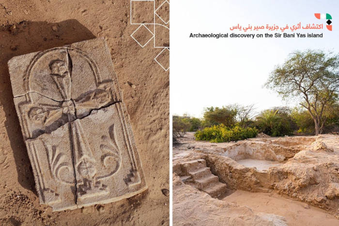 Top image: Christian Cross plaque found on Sir Bani Yas Island, Abu Dhabi, UAE. Source: UAE Department of Culture and Tourism