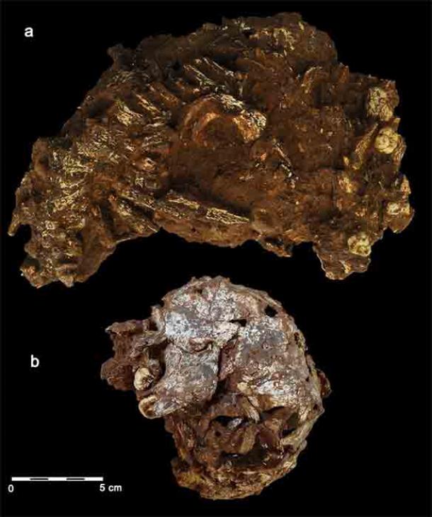 External view of the Panga ya Saidi main block with the articulated partial skeleton (upper) and external view of the left side of Mtoto’s skull and mandible (below). (Martinón-Torres, et al., 2021/Nature)