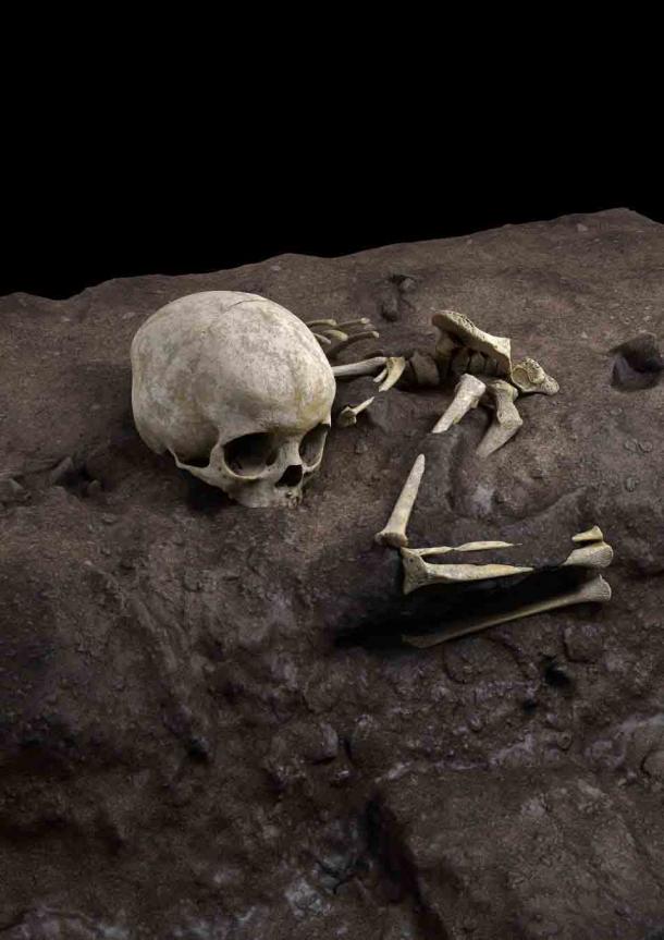 Although some of the child’s bones were encountered during excavations at the cave in 2013, it wasn’t until 2017 that the full pit for the human burial was fully exposed. The bones were found tightly clustered in the circular pit three meters (9.84 feet) below the cave floor. They were so badly decomposed that they had to be stabilized and plastered on-site.