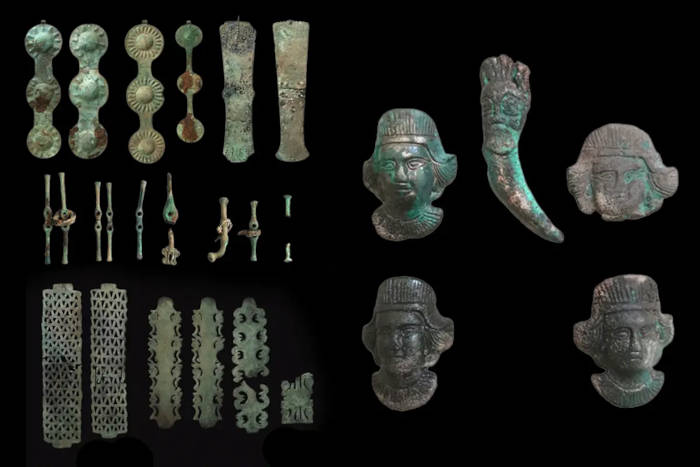 Top image: Bronze ritual artifacts including horse gear and ornamental plaques from the 4th-century BC sacrificial complex discovered at Vysokaya Mogila-Studenikin Mar, Orenburg Region. Source: Ural Archaeological Expedition Russian Academy of Sciences