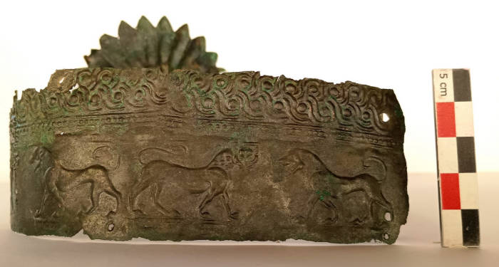Top image: The Bronze diadem, or crown, found in Atalanti, Greece is decorated with lions, a symbol of royal power. Source: Greek Ministry of Culture