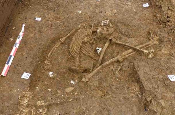 The bodies in the grave were folded in different positions so they could fit in relatively tight spaces. This style of burial explains why the skeletal remains were so well preserved, since the folding of the bodies created uneven surfaces that the acidic earth could only partially cover.
