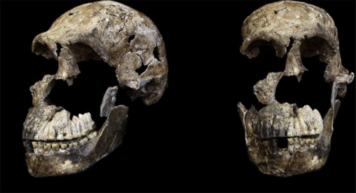 Top image: Three-quarter and frontal views of Homo neledi skull from Lesedi Chamber, South Africa. Source: Hawks, J et al/Elife Sciences