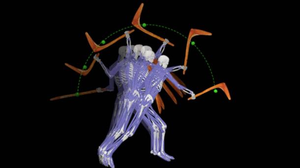 The swing of the leangle delivers a deadly blow to an opponent. (B. Cornish/Scientific Reports)