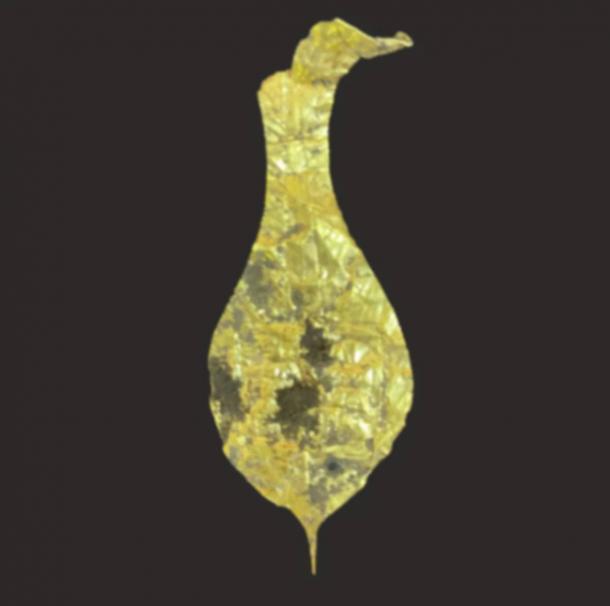 Photo of the gold votive plaque just after its discovery. (Natalia Lockley/PCMA)