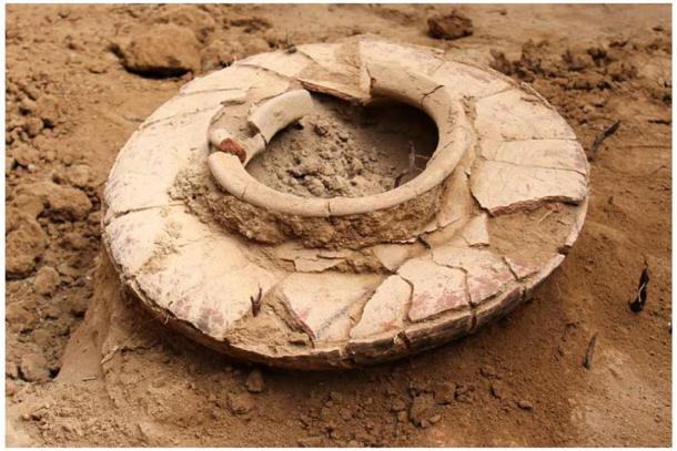 One of the 25 Keeladi civilization burial urns found at the site where the iron dagger was recently discovered in South India. (Tamil Nadu Department of Archaeology)