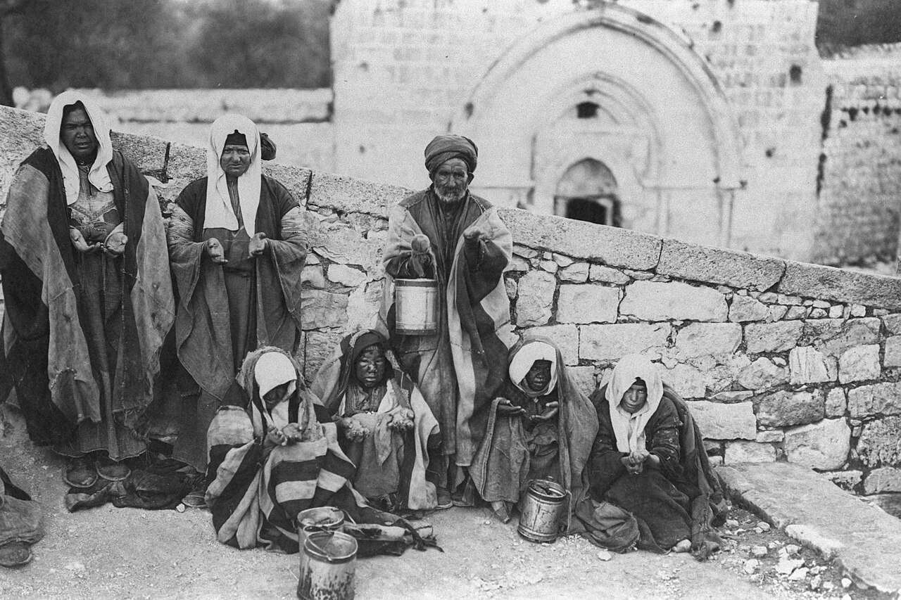 Top image: Group of Arab lepers photographed during the Ottoman reign, late 19th century. Source: Public domain