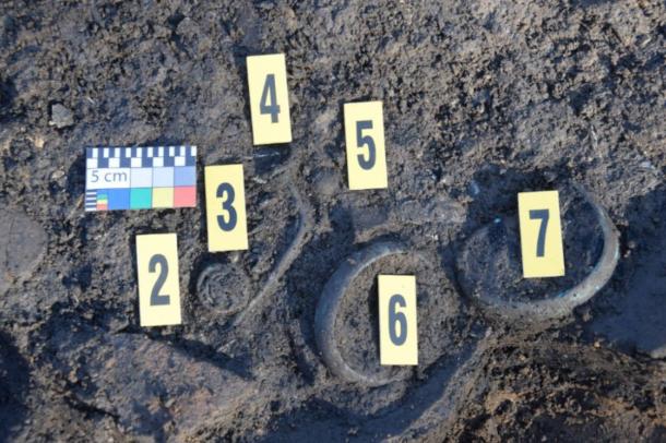 Bronze jewelry found at the site. (Nikola Orlitová/Olomouc Archaeological Center)