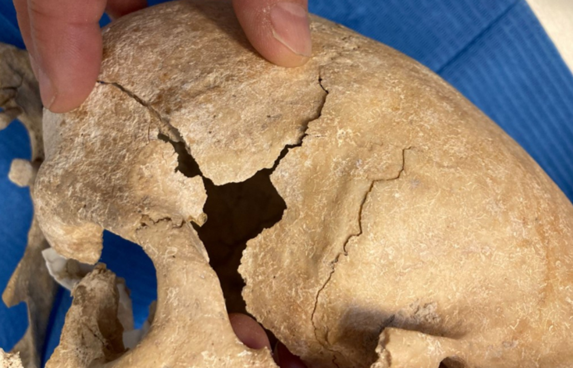 Top image: Damaged cranium of one of the warrior monks found at Zorita de los Cane. Source: Carme Rissech/ Universitat Rovira i Virgili
