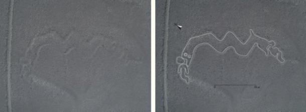 Asahi.com reports that “until now, it was thought that 80 or so geoglyphs exist”. However, the team from Yamagata University used drones and 3D data to identify up to 143 new geoglyphs. According to a press release by Yamagata University, ‘these geoglyphs depicted people and many different animals (including birds, monkeys, fish, snakes, foxes, felines, and camelids). One of the new images “shows a two-headed snake that appears to be devouring two people”.