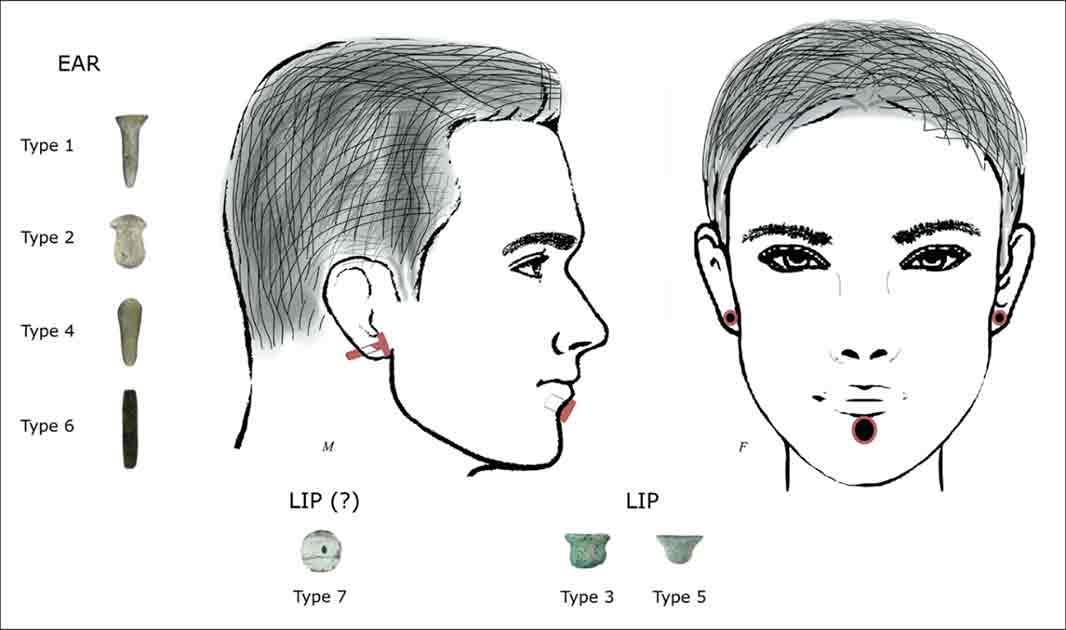 While the skin and cartilage that would have been pierced decayed away long ago, the archaeologists did find some proof to verify their conclusions about the use of the ornaments. Several of the recovered skeletons showed distinctive patterns of wear on their bottom front teeth, and that same type of damage has been observed in people from other times and places who were known to have worn labrets (the name for the ornaments used with lip piercings).