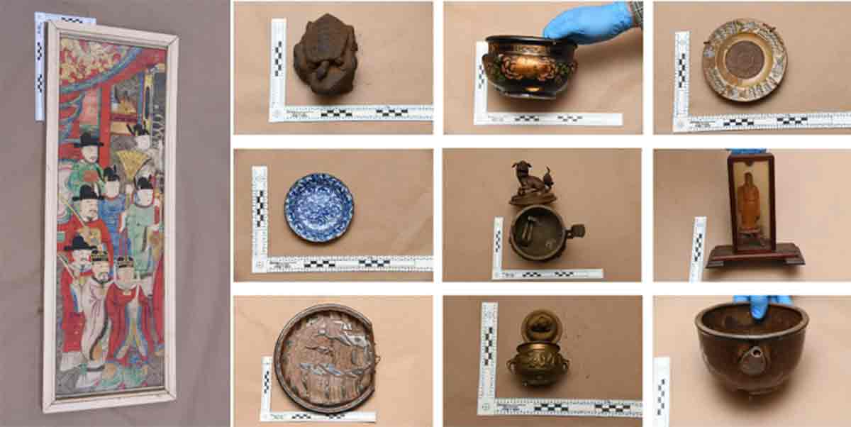 Top image: Some of the 22 looted, historic items that have been repatriated to Japan. Source: FBI Boston