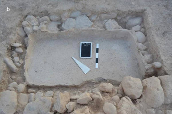Tell el-Burak, Area 3, the plastered basin in Room 3 of House 3. (Tell el-Burak Archaeological Project / Science Reports)
