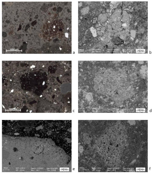 Analysis of the ceramic fragments revealed two distinct types: those fired at relatively low temperatures (below 800°C) with high porosity and optical activity, and those subjected to higher firing temperatures (above 850°C) showing extensive vitrification. The combination of these materials created optimal pozzolanic properties, enabling the chemical reactions necessary for hydraulic setting.