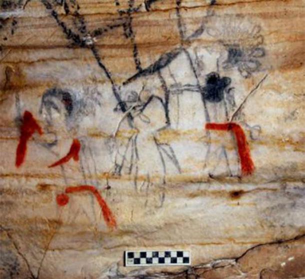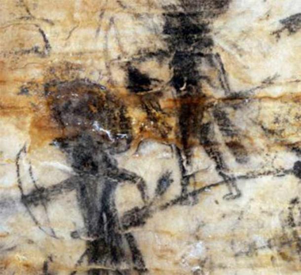 Top image: Hunting scene painted on the wall of Picture Cave, Missouri, USA. Source: Selkirk Auctioneers & Appraisers