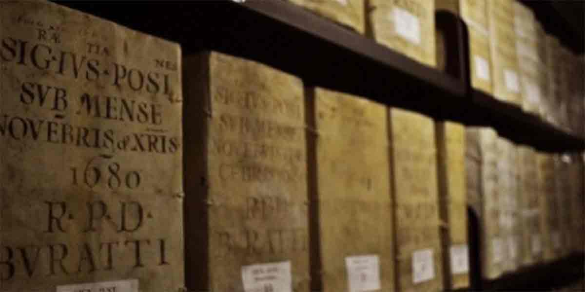 Top image: Records on the shelves of one of the Archives' storage areas, known as the Scaffali in Ferro, which contains 13 kilometers of shelving over two floors. Source: Vatican Apostolic Archives