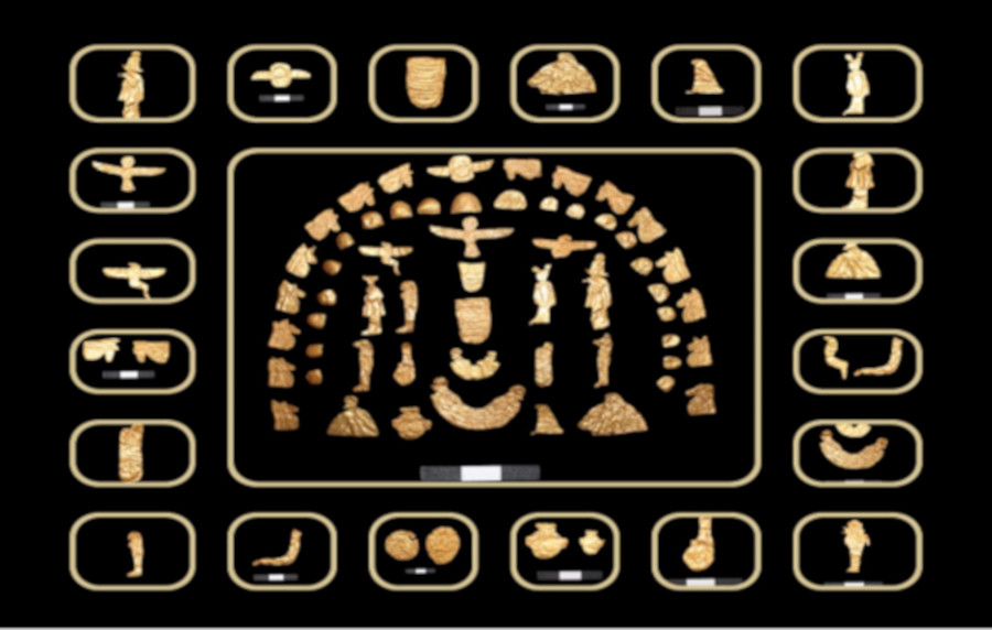 Top image: A large collection of gold foil objects retrieved at the Tel Al-Deir cemetery. Source: MOTA