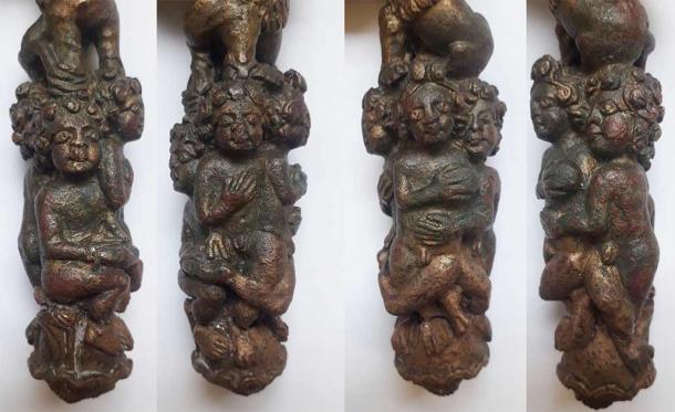 The lower half of the key handle: youths 1–4 from left to right. This remarkable artifact is shedding more light on Roman Britain and how “criminals” were dealt with by the Romans in Britannia. Source: G. Speed / University of Leicester Archaeological Services