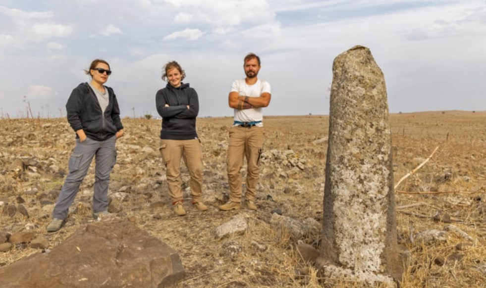 Top image: Archaeologists at a re-erected Roman milestone on the Golan Heights Roman highway. Source: Michael Eisenberg/Archaeology of Tel Aviv University