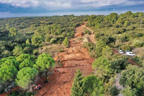Top image: The scrublands above Loupian, France where the Roman road section of the ancient Domitian Way that linked Italy with Spain, was recently discovered by French archaeologists. Source: INRAP