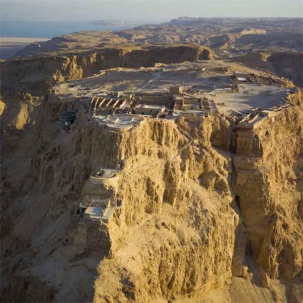 The desert fortress of Masada, the location of the Siege of Masada where the Roman soldier Gaius Messius fought, as seen for the air. (Andrew Shiva / CC BY-SA 3.0)