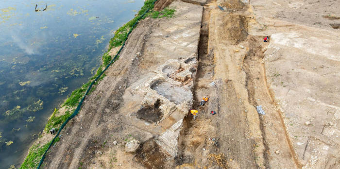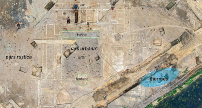 Aerial view of the thermal baths at the Roman villa at Auxerre, France. (INRAP)