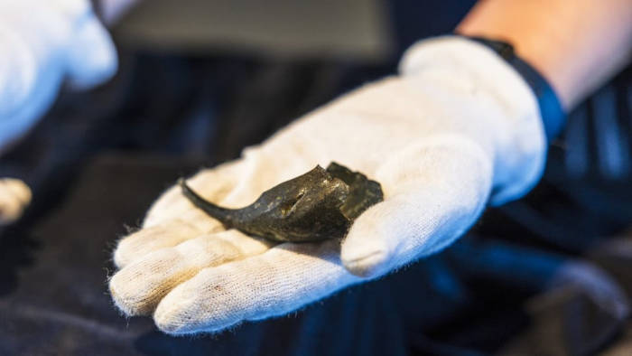 The fragment of a Roman wrist purse dates back about 1845 years, found in the fortress Hradisko. (Radim Strachoň/MF DNES)