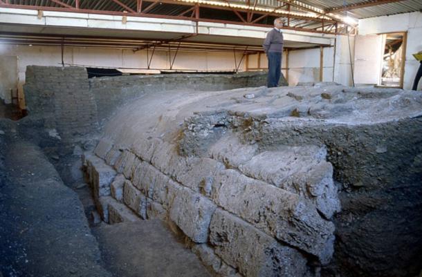 Tomb II ("Tomb of Philip II") at Vergina. Back of facade and exterior of barrel vault with remains of funeral pyre. (Mark Landon/Public Domain)